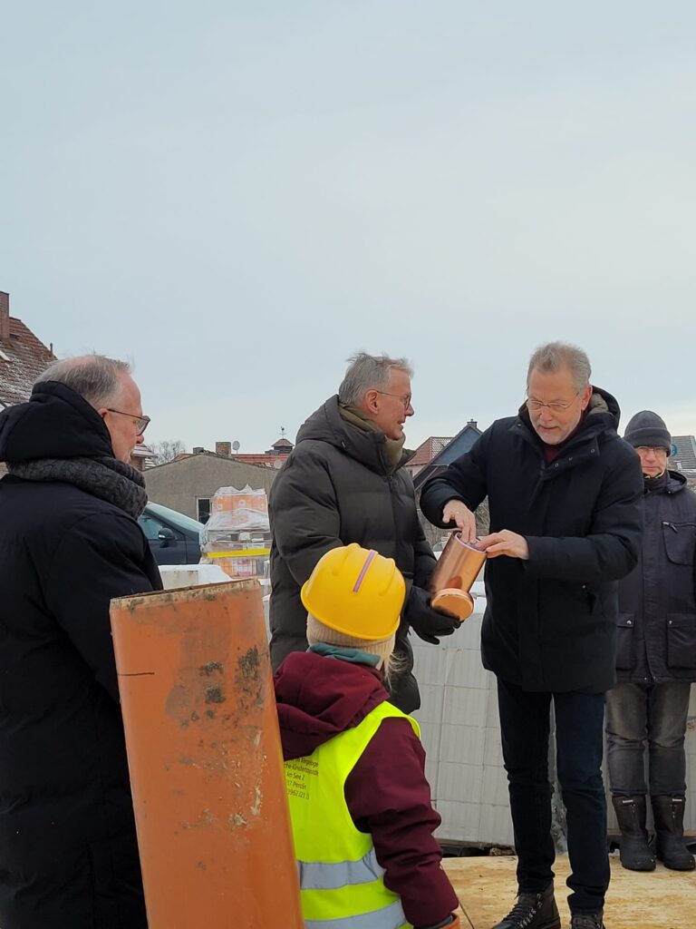 Am Freitag, den 9. Januar 2026, haben wir bei frostigen Temperaturen den Grundstein für die neue Kindertagesstätte „Simon unter’m Regenbogen“ in Penzlin gelegt. Ein symbolträchtiger Moment, der zeigt: Wir starten voller Energie und Zuversicht in das neue Jahr!