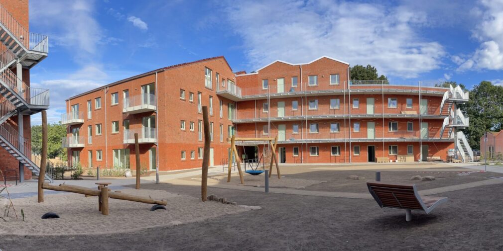 Die Menschen werden hier nicht nur wohnen, sondern sich auch begegnen. Gelegenheiten dazu gibt es jedenfalls reichlich – ob in den Gemeinschaftsräumen, den Dachterrassen oder dem Gemeinschaftsgarten, welcher die Gewerbe- mit der Wohnbebauung aktiv verbindet. Auch die Architektur spiegelt diese Idee wider: Die Wohneinheiten sind durch Laubengänge miteinander verbunden und der großzügig angelegte Hof lädt zu gemeinsamen Aktivitäten ein.